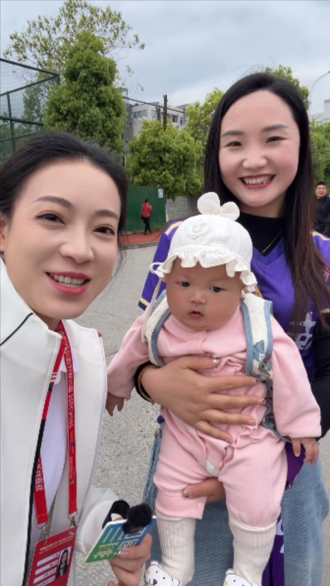 直播还没开始,我就先遇见了这个四个月大的宝宝,小家伙可能啥也看不懂,就已经被家长带来“感受”足球了。