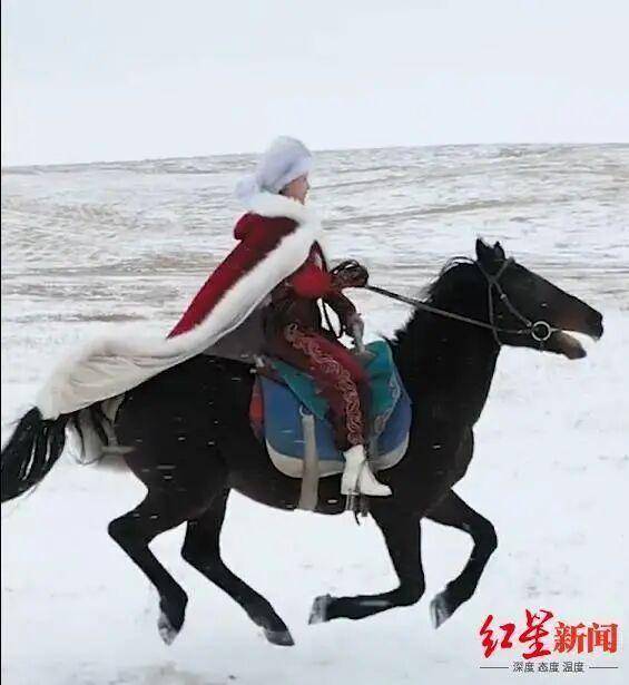 2021年4月,贺娇龙在接受红星新闻专访时曾谈及自己“雪原策马文旅宣传”的创意由来。彼时,贺娇龙脸上带着笑容,骄傲地告诉红星新闻:“因为我会骑马。”