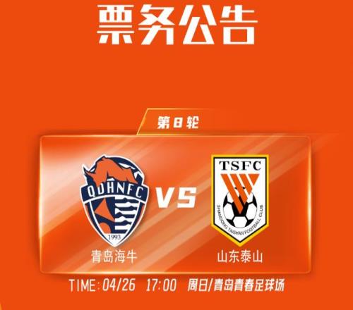 足球直播,欧洲杯直播,体育直播,球客直播,雷速体育,篮球直播,风驰直播,NBA直播,英超直播,足球比分,足球赛事,意甲,欧冠,世界杯,世界杯直播,村超,贵州村超,波胆,角球,串球,大小球4月26日(星期天)17:00,在2026赛季中超联赛第8轮的一场焦点对决中,青岛海牛坐镇主场青岛青春足球场,与山东泰山上演齐鲁德比。4月20日,青岛海牛足球俱乐部发布了这场比赛的票务公告。
